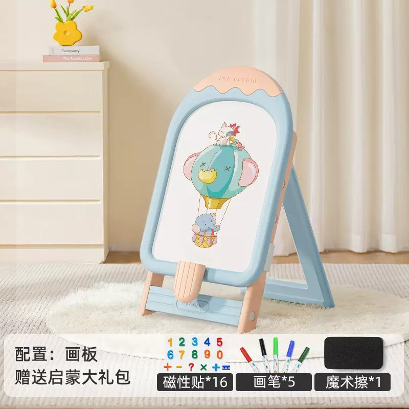曼龙雪糕画板磁性写字板儿童家用支架式宝宝涂色涂鸦可擦除小黑板 雪糕画板-普鲁蓝