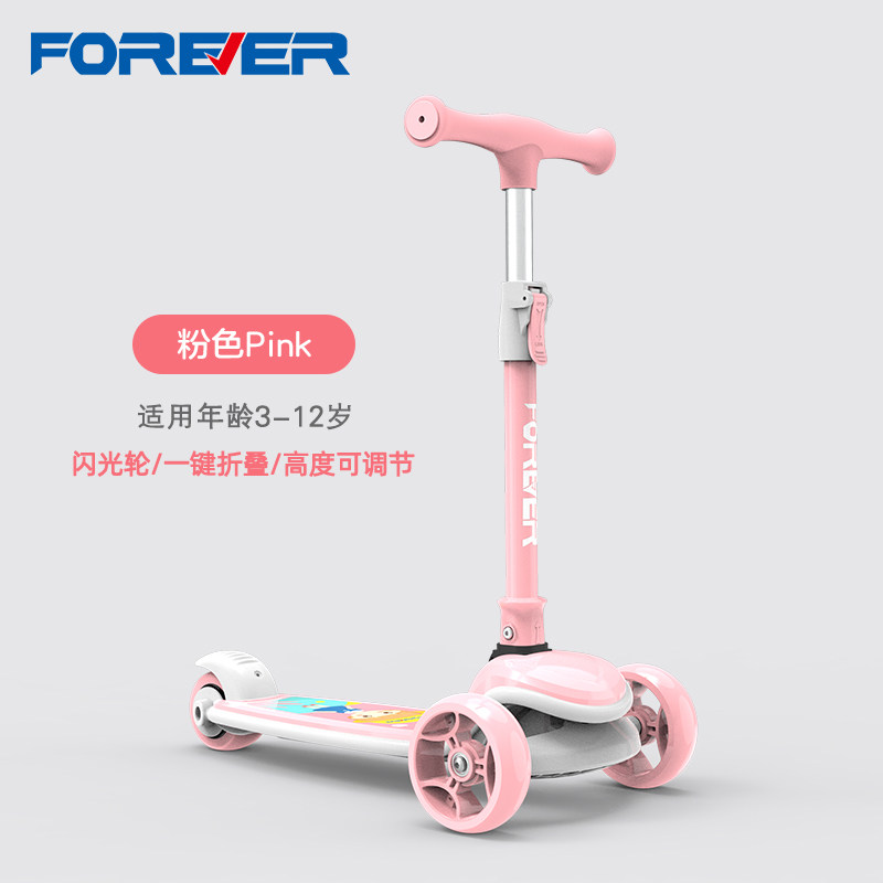 永久滑板车儿童新款1-3-6-12岁以上小男孩女大童宝宝滑滑车可折叠 粉色 【适用年龄:3-12岁】