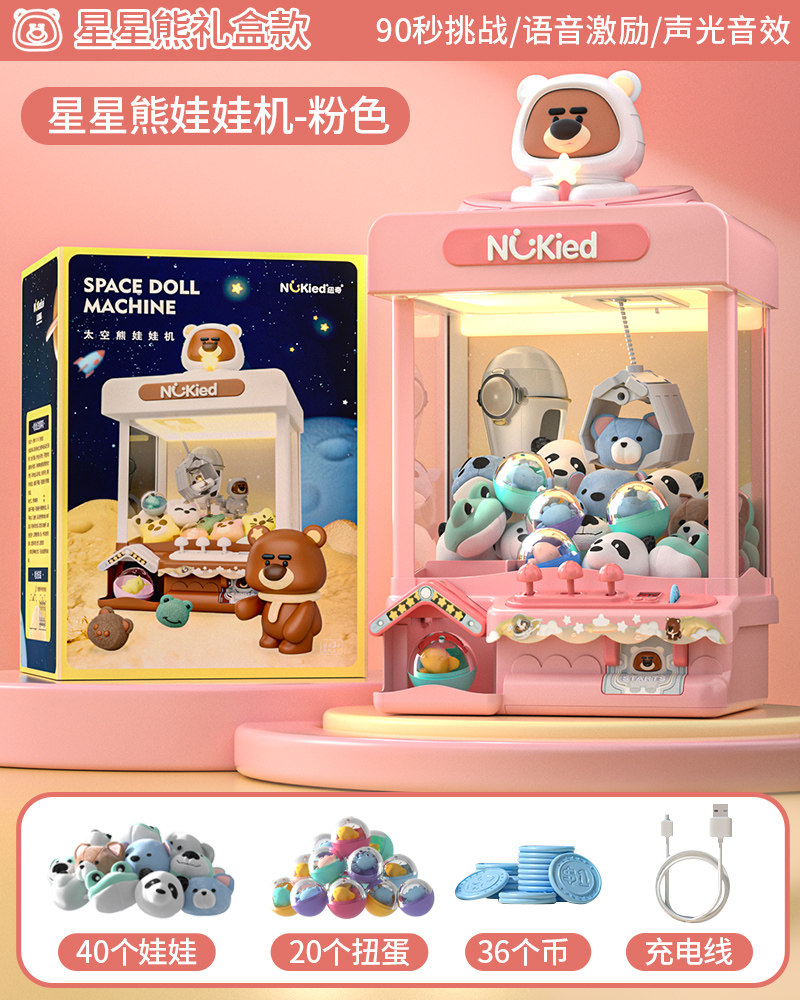 2025新款抓娃娃机儿童玩具小型家用夹公仔机大号扭蛋机男女孩礼物 【公主粉礼盒款】-语音激励+40娃娃+20扭蛋+36币