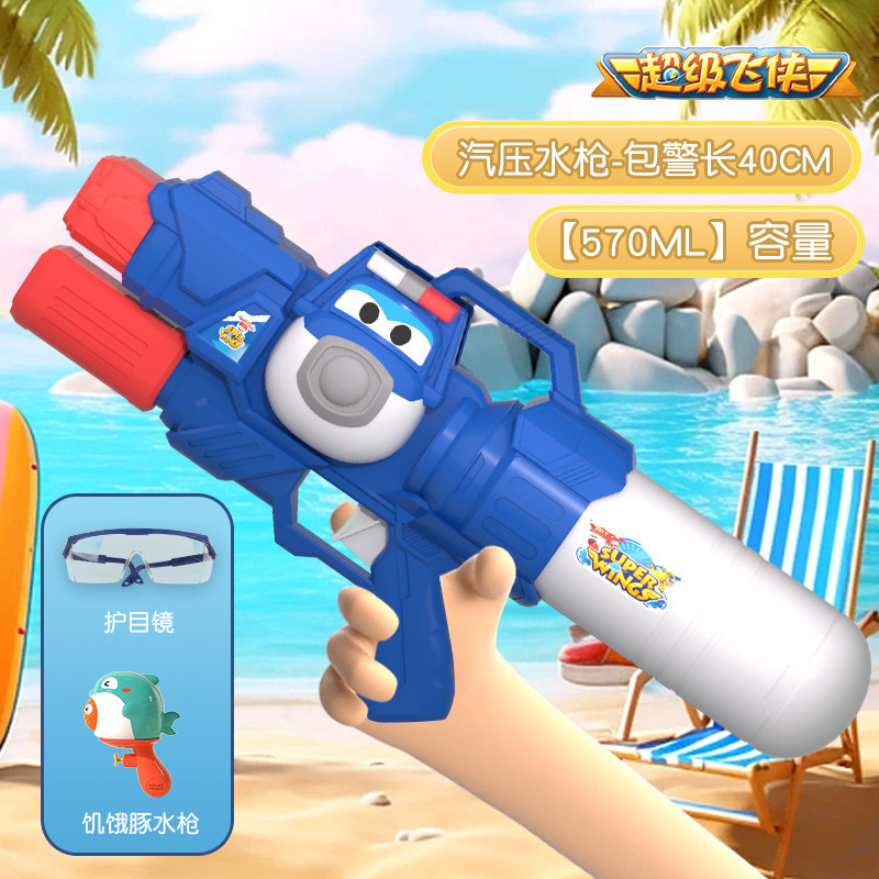 超级飞侠乐迪水枪玩具抽拉式喷水漂流打水仗儿童户外戏水男女礼物 【包警长】40cm水枪+小水枪+护目镜