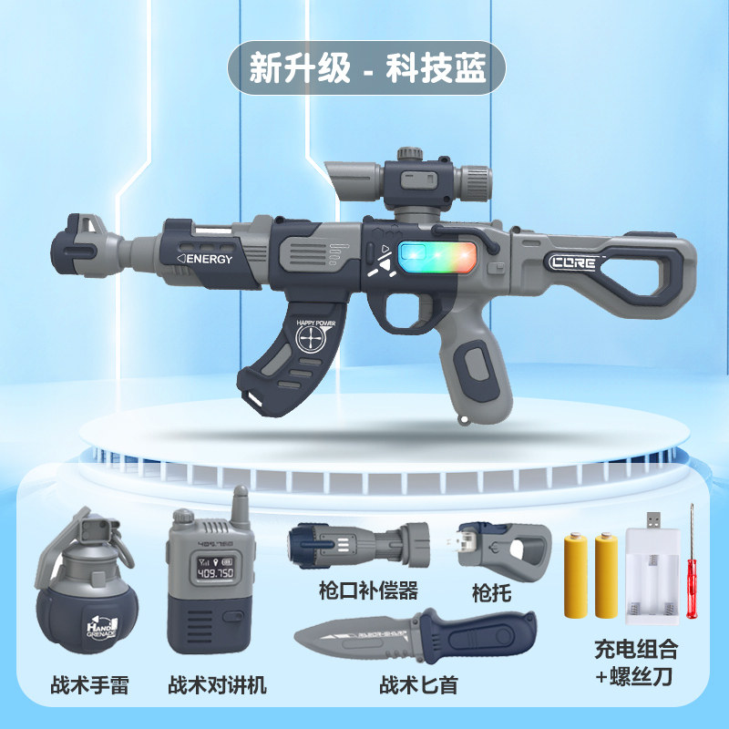 儿童DIY玩具枪仿真电动冲锋枪声光百变磁力拼装礼盒男孩生日礼物 【充电版】大号磁力拼装枪 手提礼盒装+对讲机+匕首+手榴弹