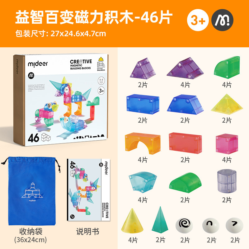 mideer弥鹿磁力积木几何立体百变大颗粒低幼男女孩儿童益智玩具 【认知启蒙】磁力积木-46pcs