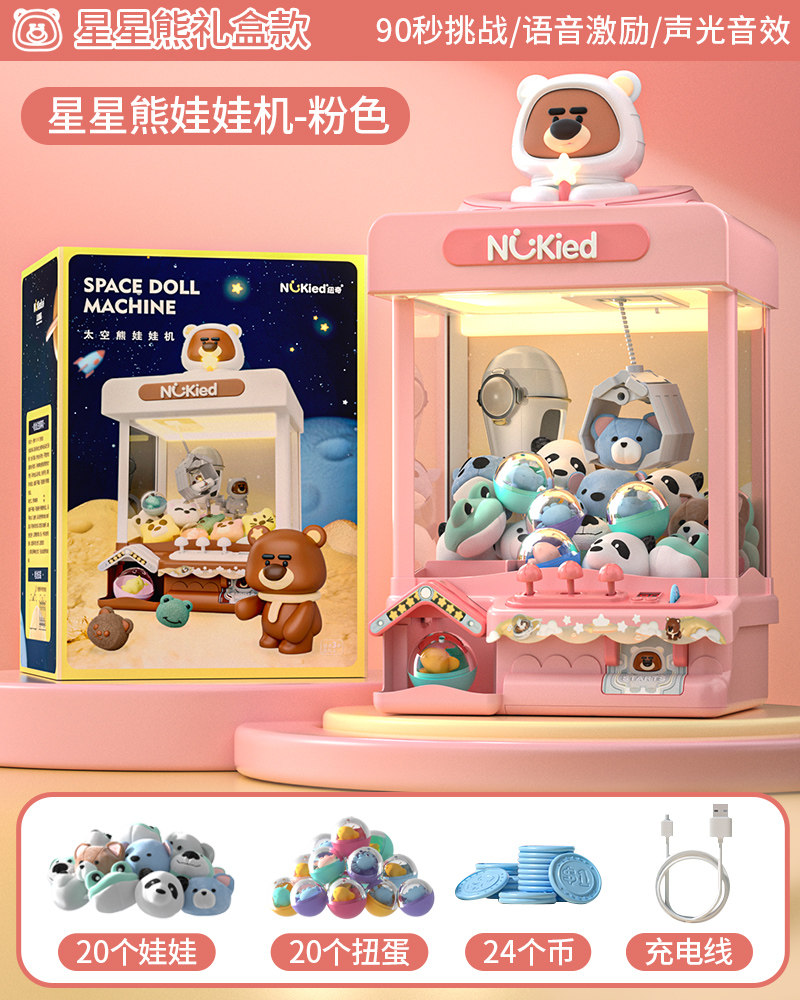 2025新款抓娃娃机儿童玩具小型家用夹公仔机大号扭蛋机男女孩礼物 【公主粉礼盒款】-语音激励+20娃娃+20扭蛋+24币
