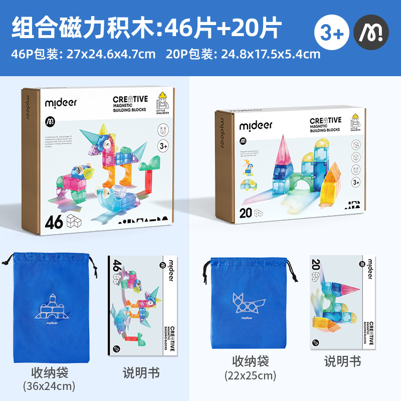 mideer弥鹿磁力积木几何立体百变大颗粒低幼男女孩儿童益智玩具 【成长帮手】磁力积木-66pcs