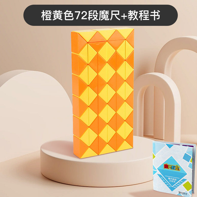 儿童百变魔尺魔方蛇条幼儿园益智玩具缤纷彩虹 橙黄色72段魔尺+教程书