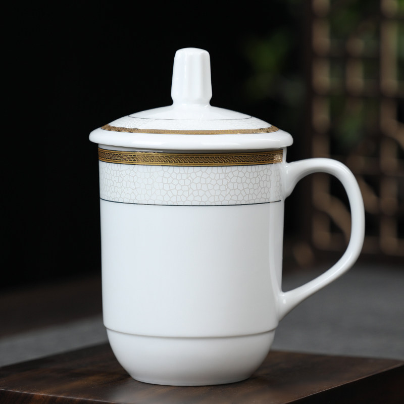 苏氏陶瓷 陶瓷盖杯 商务会议办公茶杯单位公司开会茶杯 黄金线条