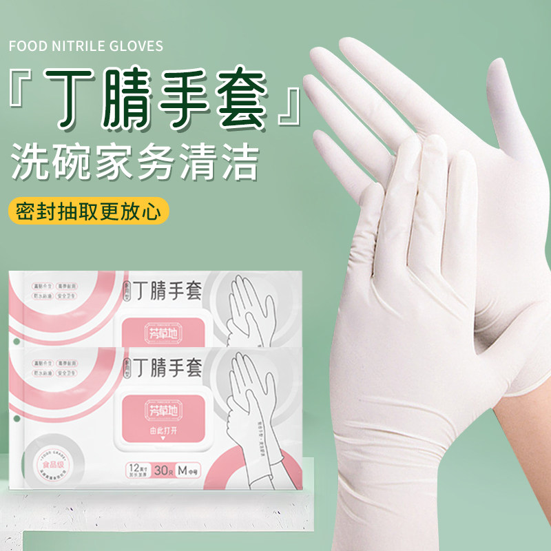 芳草地一次性洗碗手套女丁晴家务清洁厨房耐用食品级加长丁腈 S 【升级抽取包装】加长白丁腈90只