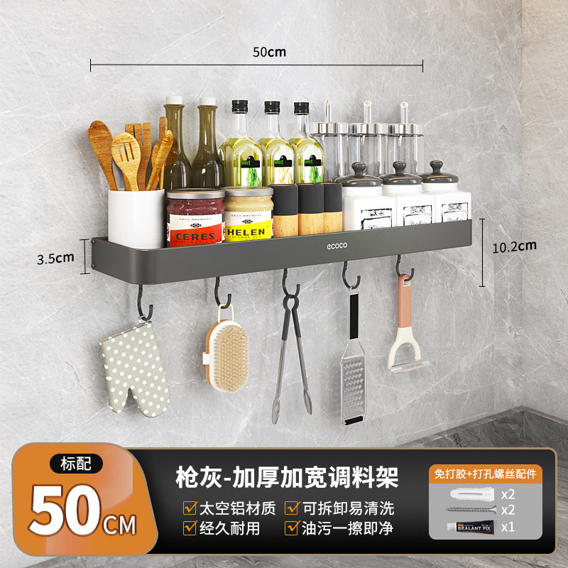 意可可枪灰厨房置物架免打孔壁挂式调料架调味品多功能家用收纳架 大号普通版-枪灰加厚款50cm