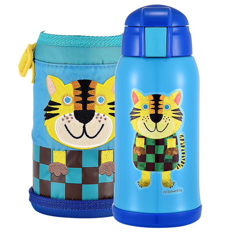 虎牌tiger萌趣卡通真空不锈钢吸管保温杯儿童学生上学专用保冷 小老虎630ml+杯套