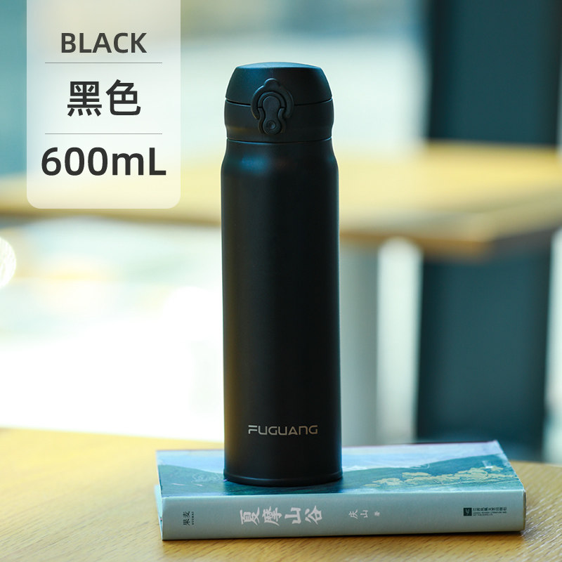 富光保温杯316L不锈钢男生女弹盖水杯学生专用杯高颜值喝水杯子 600ml黑色-316L内胆