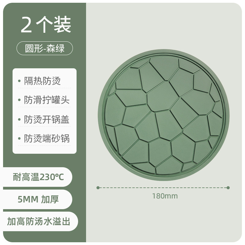 优勤隔热垫防烫桌垫碗垫耐高温餐桌菜盘垫家用餐垫 圆形隔热垫-森绿2个装【5mm加厚 耐温230℃】