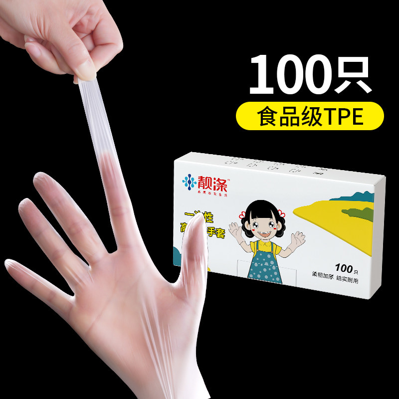 靓涤一次性手套TPE洗碗女贴紧家用防水厨房家务薄款清洁神器 S 1盒100只TPE手套