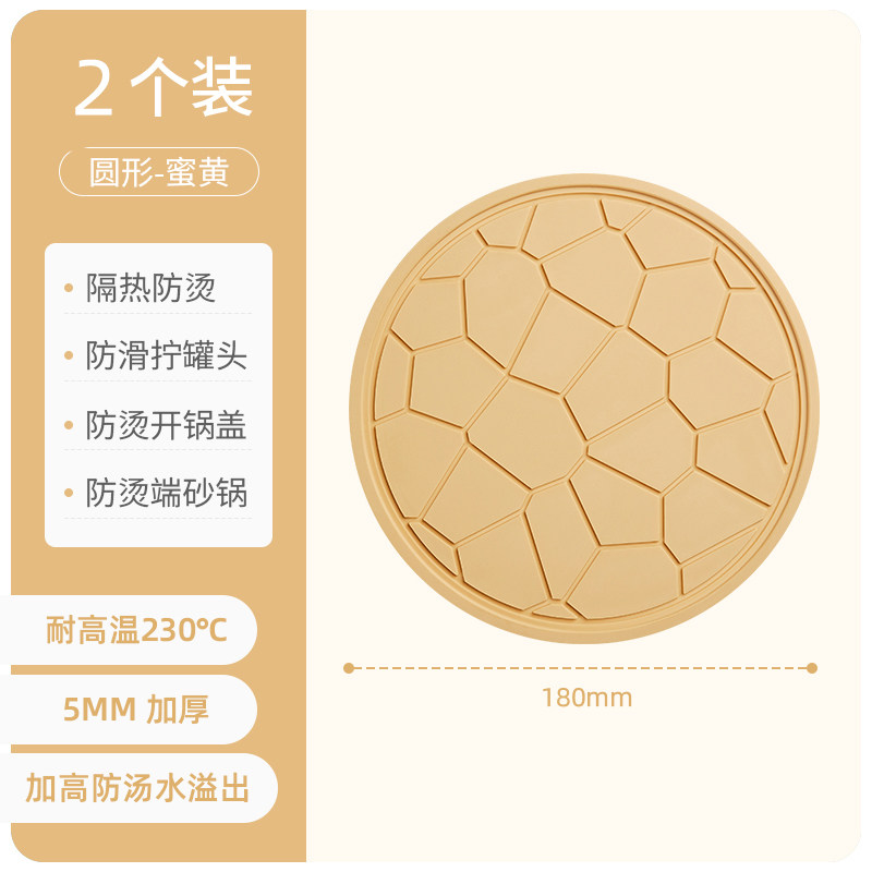 优勤隔热垫防烫桌垫碗垫耐高温餐桌菜盘垫家用餐垫 圆形隔热垫-密黄2个装【5mm加厚 耐温230℃】