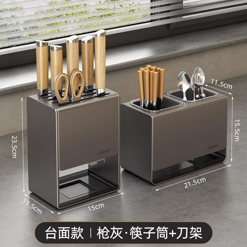 优勤两用厨房置物架枪灰菜刀架筷架台面筷笼一体收纳架壁挂式 组合装·枪灰丨基础 刀架+筷子盒【台面+壁挂】两用