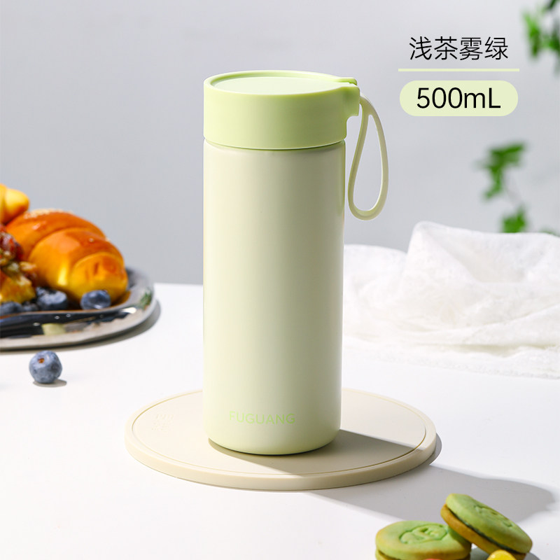 富光保温杯316L不锈钢口袋杯女生高颜值可爱带提绳便携水杯学生 绿色500ml