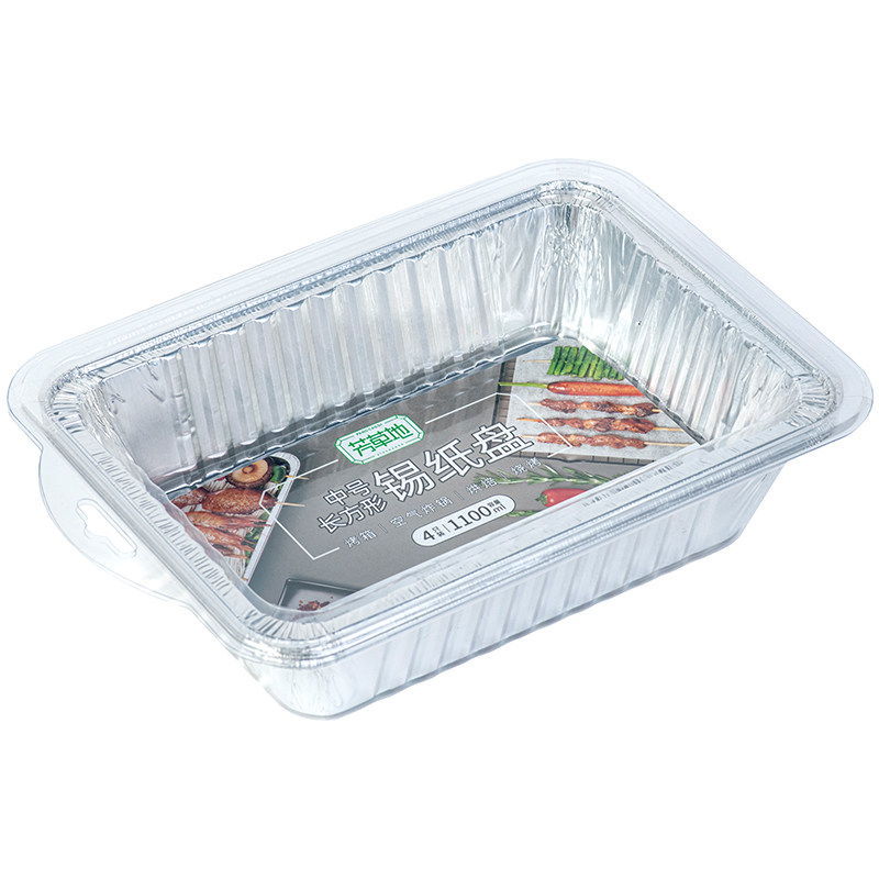 芳草地一次性方形铝箔锡纸烧烤盘加厚烤鱼盘烤箱家用餐盒户外 长方形锡纸盘1100ml 8只装