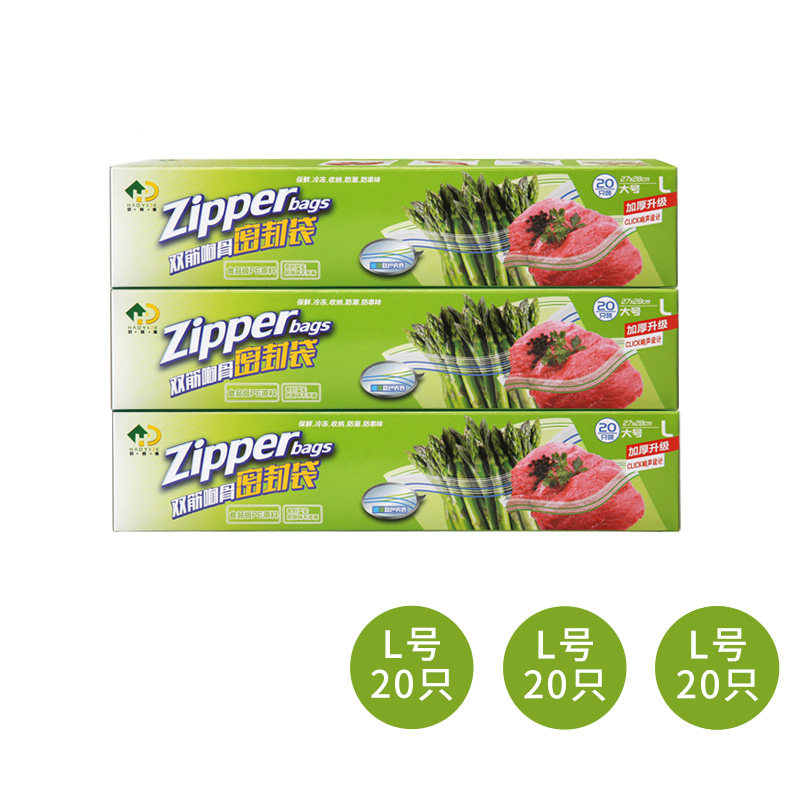 好易得保鲜袋密封袋双筋封口食品级密实袋一次性食品级收纳袋子 大大大共60只 件数:1