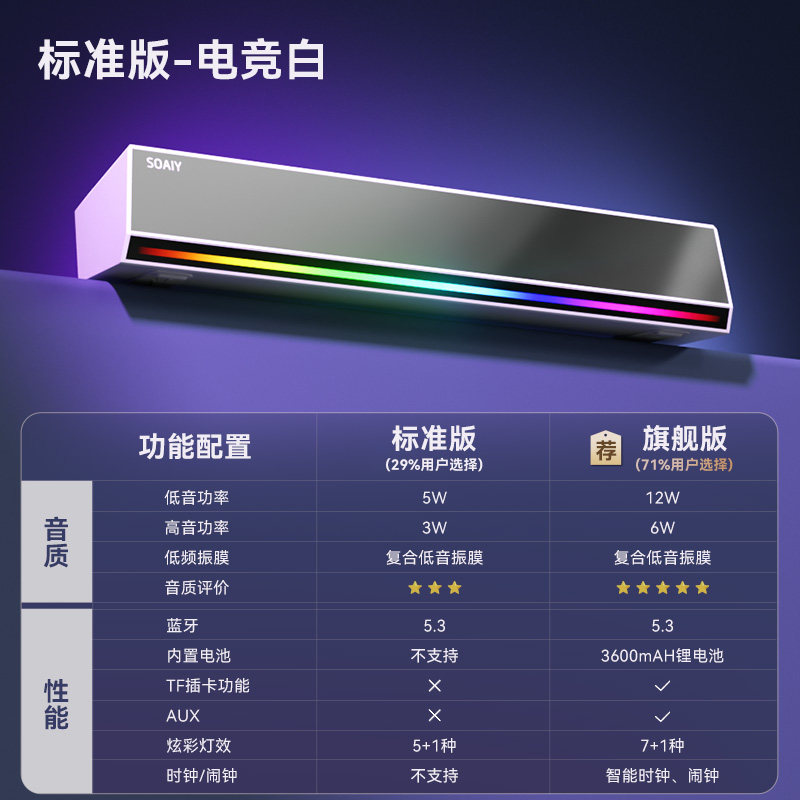 索爱SH18电脑音响台式蓝牙音箱游戏桌面电竞游戏 官方标配 标准版白(8W功率/炫彩灯效)