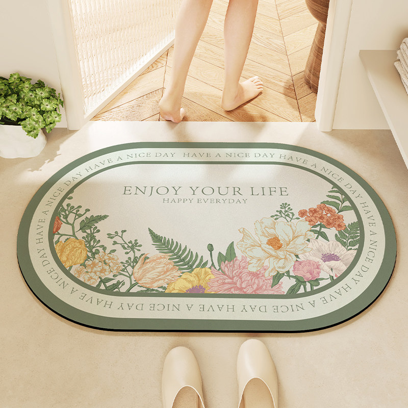 大江浴室地垫卫生间门口吸水脚垫厕所洗手间速干防滑垫子 40*60cm 淡然花开