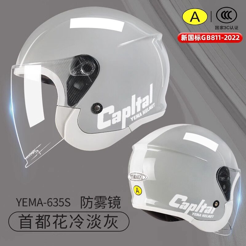 野马3C认证电动摩托车头盔灰男女冬季半盔四季通用电瓶车安全盔帽 均码 3C首都冷淡灰-防雾贴