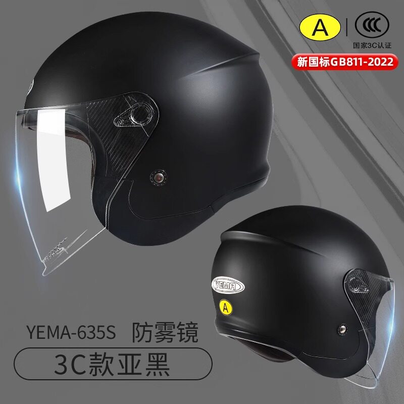 野马3C认证电动摩托车头盔灰男女冬季半盔四季通用电瓶车安全盔帽 均码 3C-亚黑-防雾贴