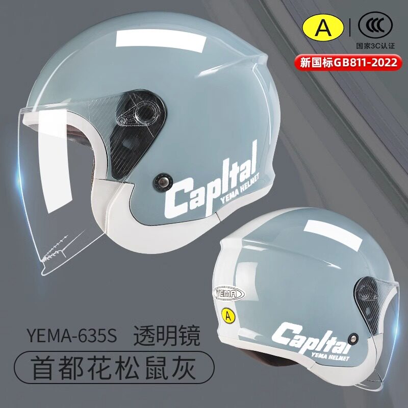 野马3c认证电动车头盔男女通用摩托车安全盔冬季保暖四季通用半盔 均码 首都松鼠灰+〖透明镜〗