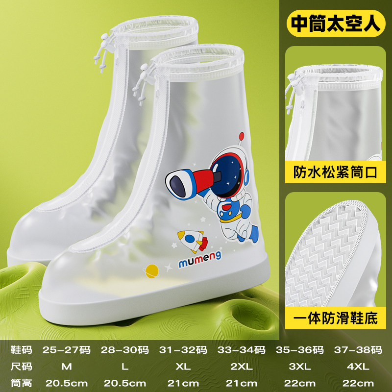 牧萌雨鞋套防水防滑外穿高筒加厚耐磨男童小学生便携儿童雨靴鞋套 中筒太空人【加厚一体式鞋底 防水松紧口】 XL【31-32码】