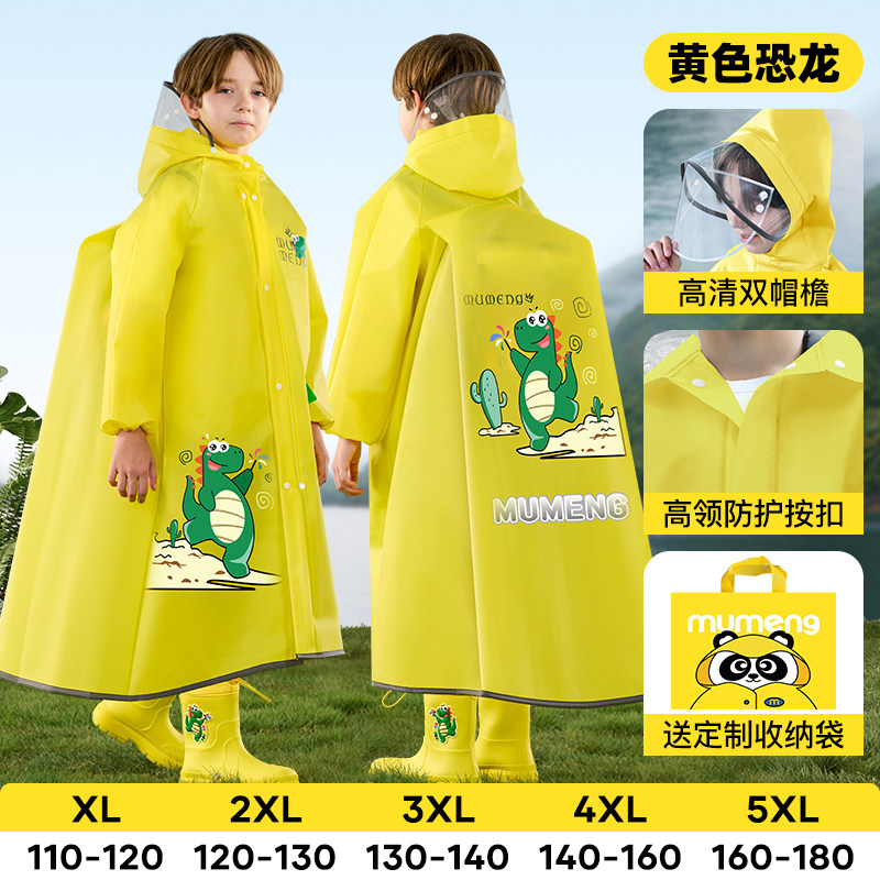 牧萌儿童雨衣6-12岁上学专用全身防暴雨带书包位男女童学生雨披 4XL【建议身高140CM-160CM】