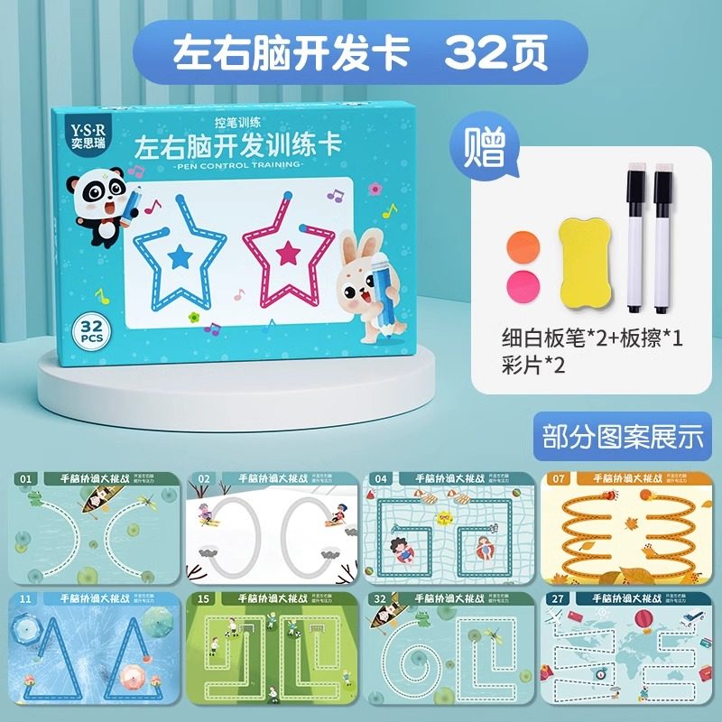 奕思瑞幼儿控笔训练字帖描红画画本幼儿园练字本儿童2岁3涂色入门 左右脑开发【32页】尊享款卡片加大60%