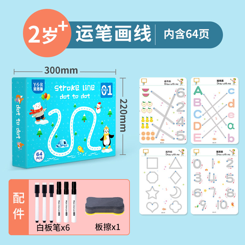 奕思瑞幼儿控笔训练字帖描红画画本幼儿园练字本儿童2岁3涂色入门 描点绘画【128页】尊享款卡片加大60%
