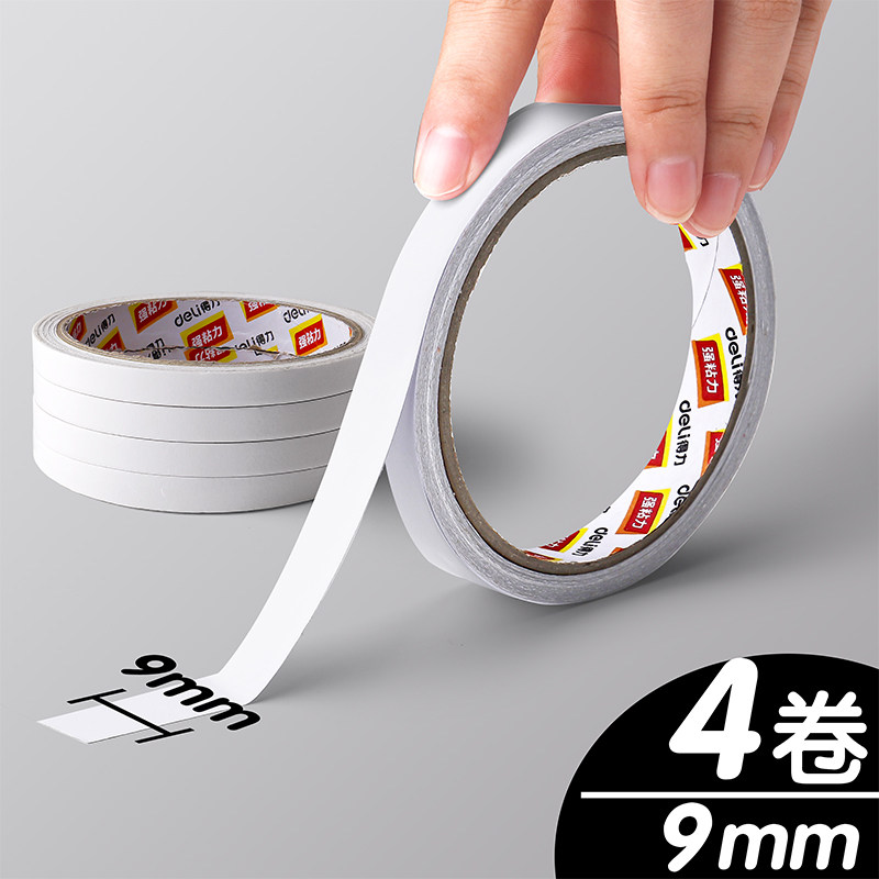 得力强力双面胶幼儿园儿童手工专用高粘度纸胶带不留胶无痕办公用 宽9mm*10m/4卷 1件