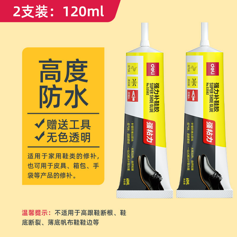 得力补鞋胶修鞋专用软胶水粘得牢强力沾鞋胶防水树脂补鞋胶水 【搭配2套6件补鞋工具】60ml/2支