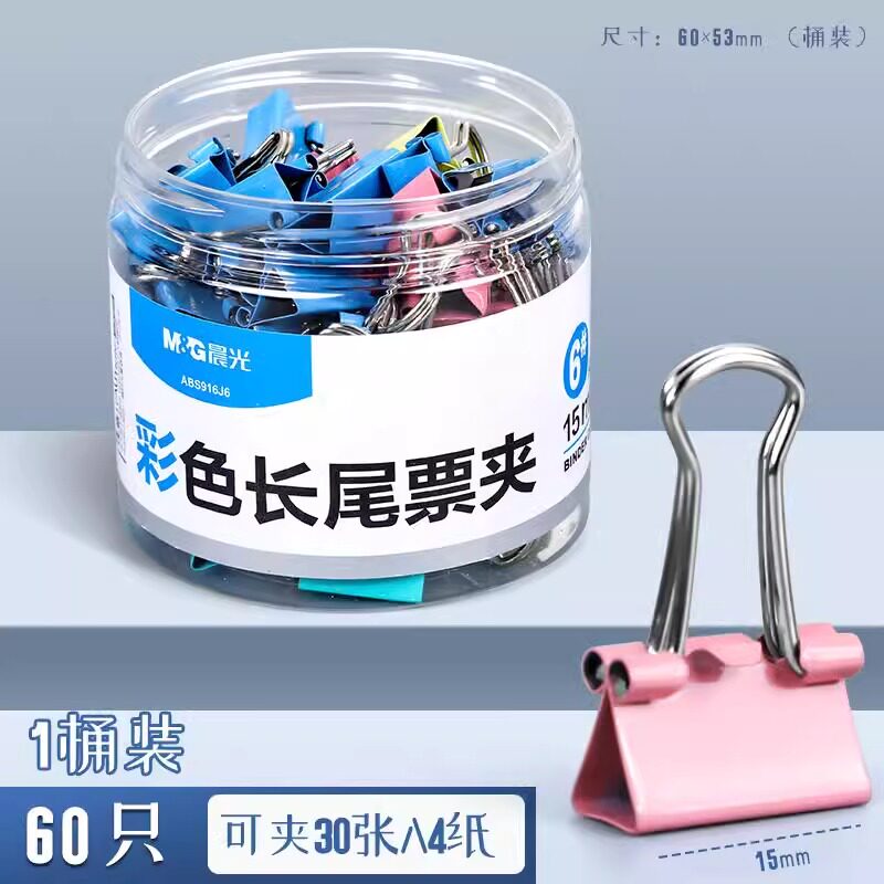 晨光长尾夹彩色黑色文件夹子多功能金属燕尾夹发票据省力办公用品 彩色款15mm|60枚