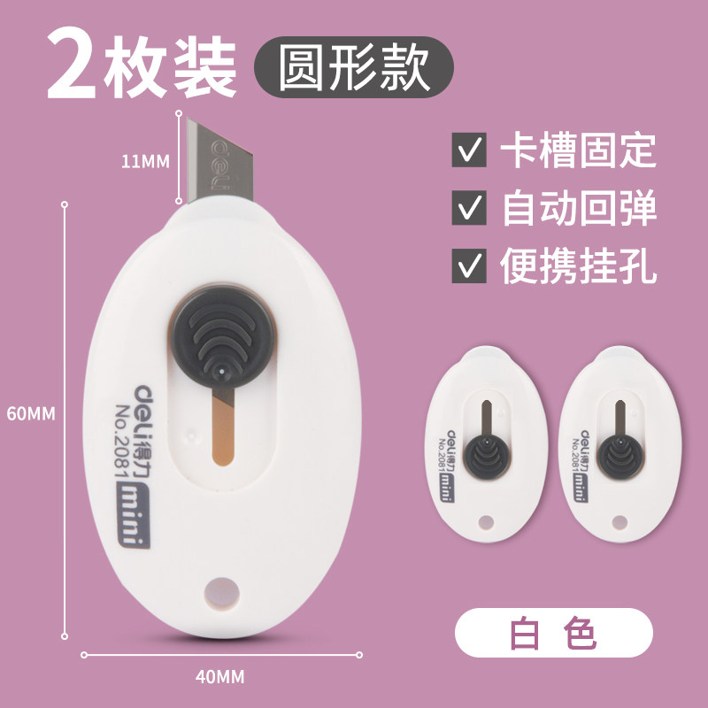 得力迷你美工刀拆快递小刀挂孔设计轻松省力锋利便携学生办公文具 60°以下 60mm 1cm 【基础版不锈钢刀片】白色 2把送2支双头记号笔