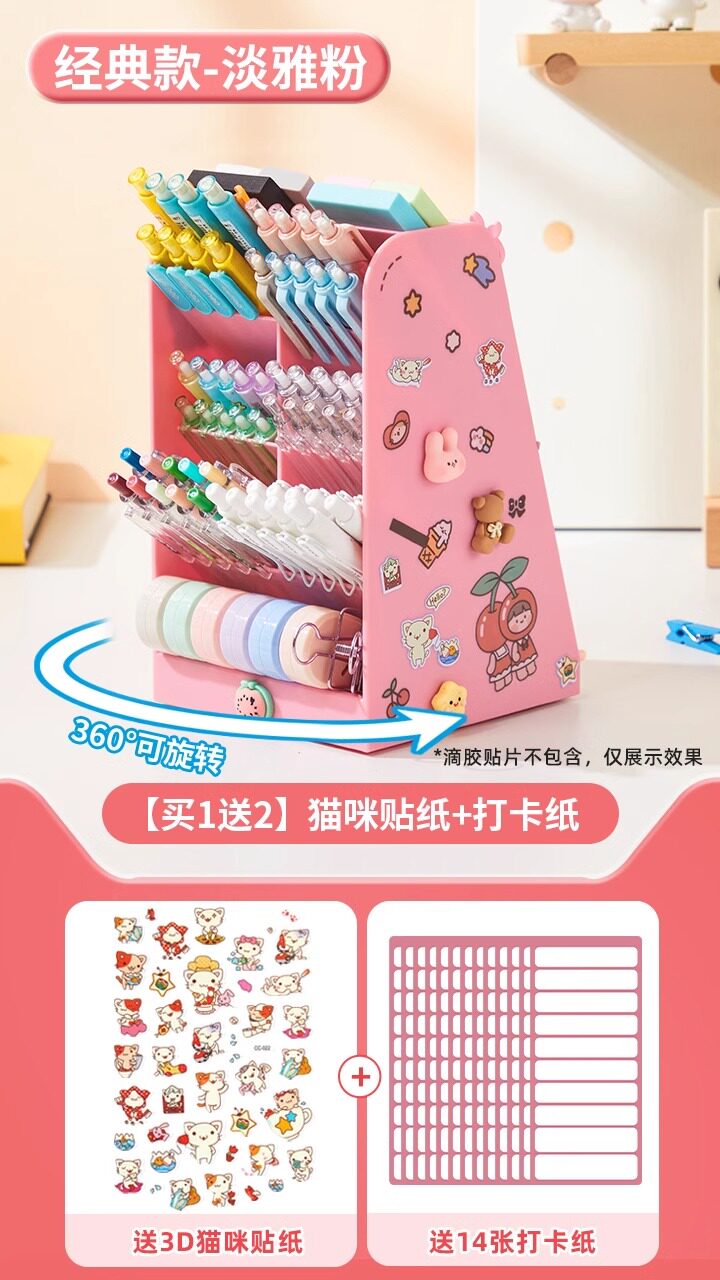 猫太子笔筒自律打卡器旋转记录小学生每日学习计划表作业专用神器 经典款-淡雅粉 【买1送2】