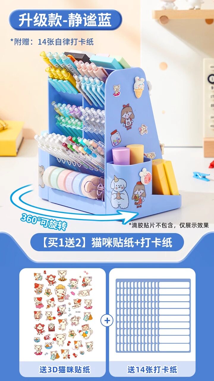 猫太子自律打卡神器笔筒收纳创盒意儿童暑假桌面计划表小学生文具 经典款-静谧蓝 【买1送2】