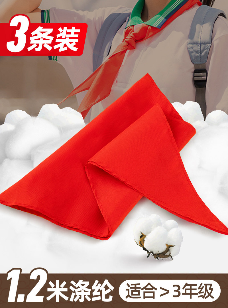 得力红领巾小学生纯棉不掉色少先队员全棉大号一二年级初中生棉布 【涤纶款】1.2米/3条(4~6年级)