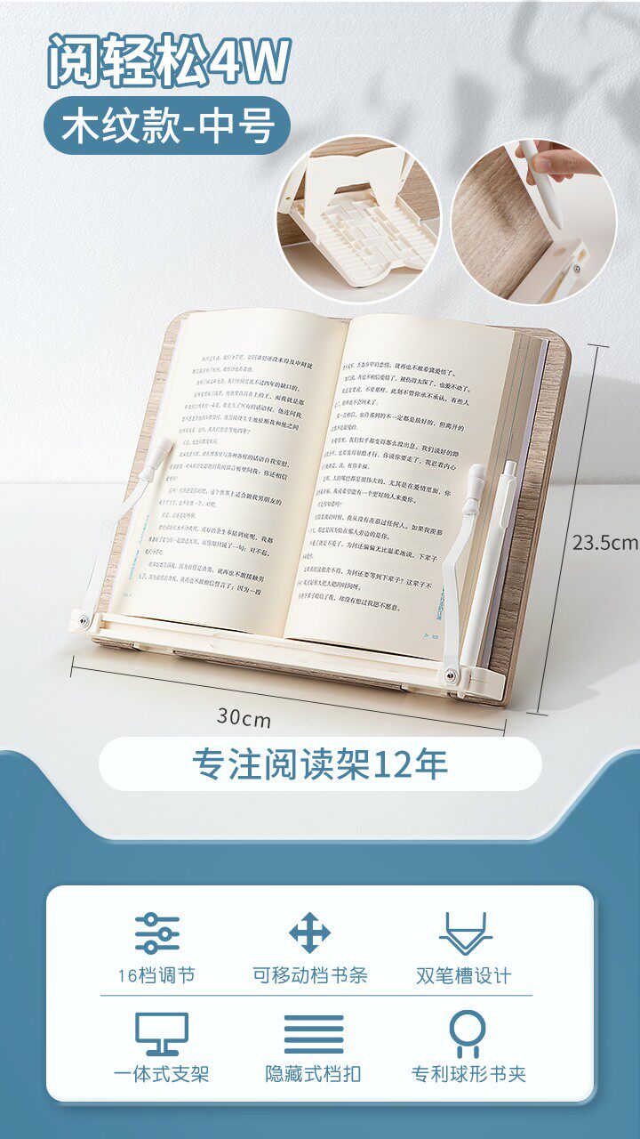 南国书香木质阅读架看书读书学习支架考研书架可调节桌面书便携 阅轻松4W木纹款-中号