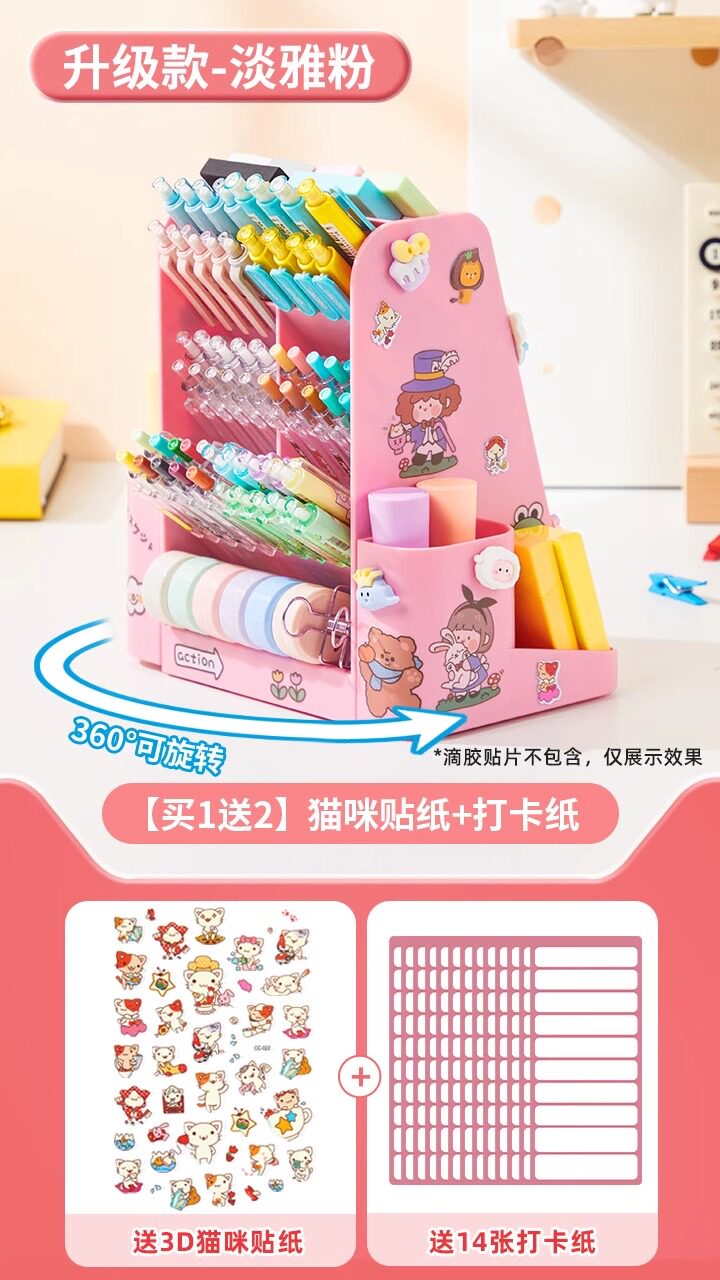 可拆卸斜插式笔筒大容量多功能马克笔收纳盒轻奢高级感ins风笔架 1个斜插笔筒+玫红蝴蝶结+玫红修狗贴片