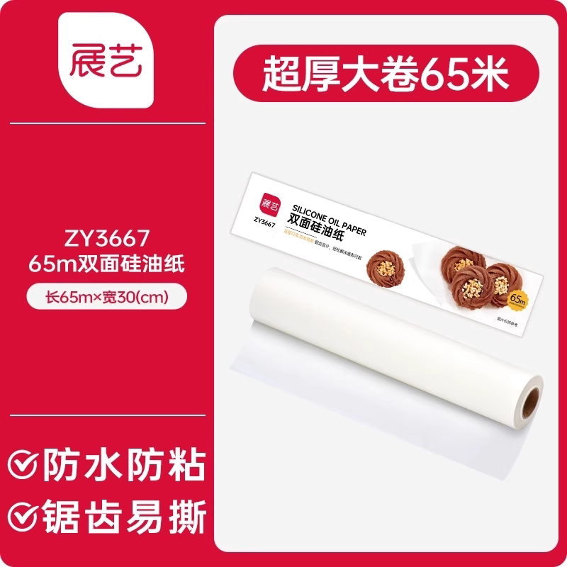 展艺硅油纸双面不粘免刀撕食品烘焙烤箱烧烤肉空气炸锅吸油纸家庭 油纸【65m*30cm】