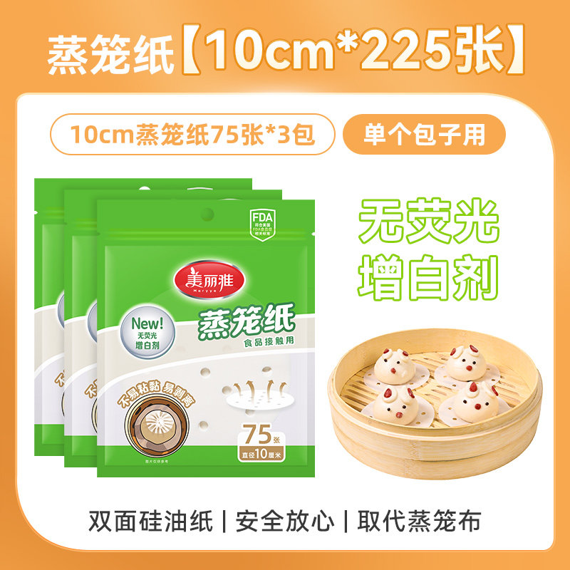 美丽雅一次性蒸笼纸包子垫纸吸油纸屉布厨房专用蒸锅不粘包子蒸垫 圆形10cm*225张(适合单个包子用)