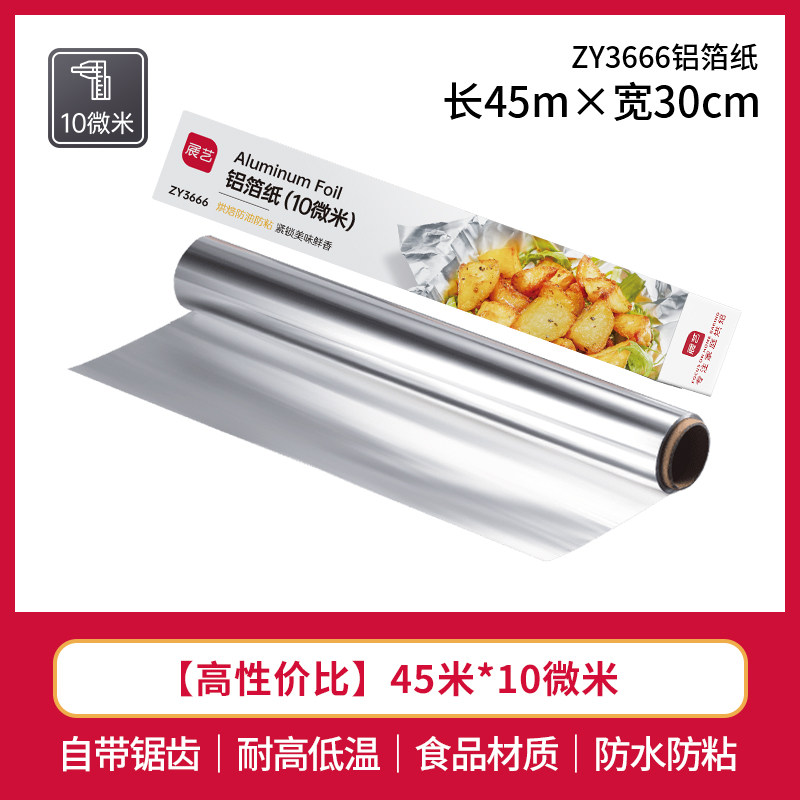 展艺铝箔锡纸家用空气炸锅专用垫纸烧烤烘焙野餐食品级烘焙吸油纸 【长45m*宽30cm*10微米】