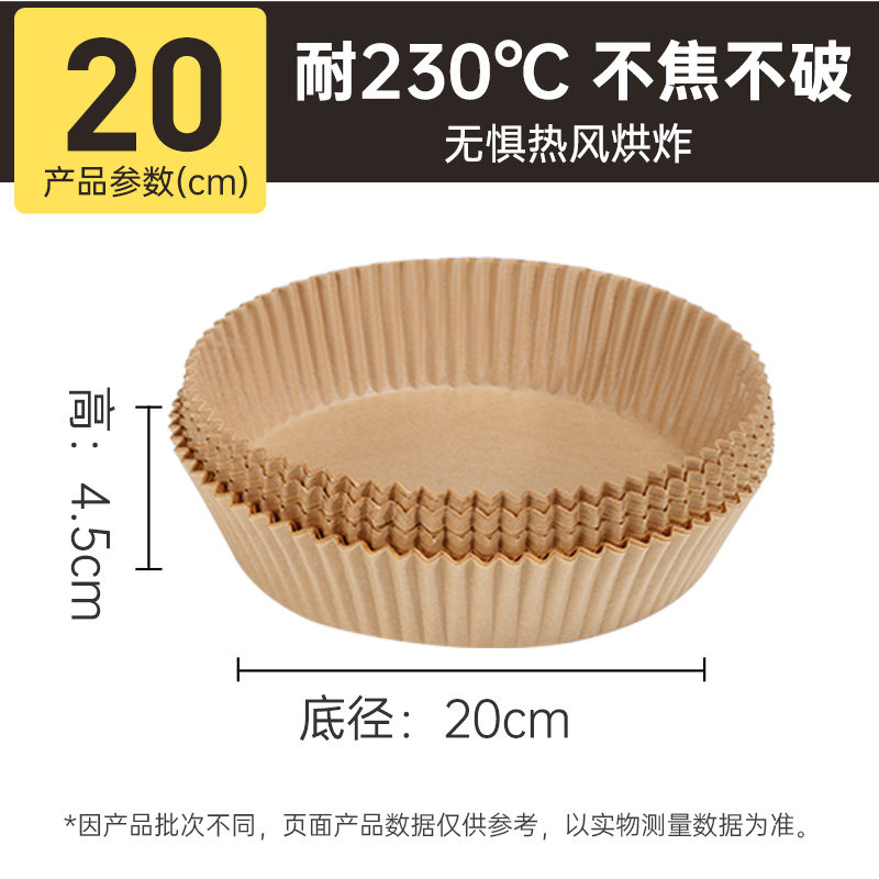 炊大皇空气炸锅专用纸烘焙吸油纸托家用食品级烤盘厨房纸垫 耐高温烘烤【圆形 20cm 100张】
