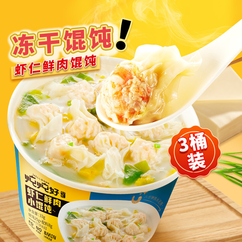 盛耳馄饨虾仁鲜肉鸡汤馄饨冲泡即食水饺早餐统装 虾仁鲜肉小馄饨33g*3桶