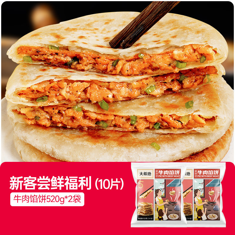 大希地牛肉酥皮馅饼速食早餐半成品加热即食手抓饼儿童煎饼食材 【新客尝鲜福利】【10片】牛肉馅饼520g*2袋