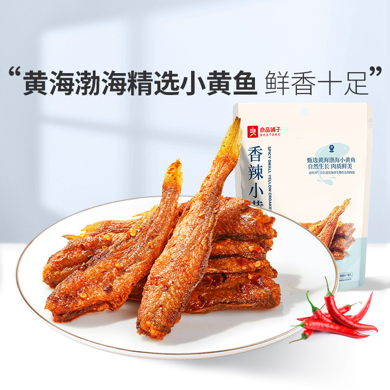 良品铺子香辣小黄鱼香酥鱼干118g*1袋即食海鲜小吃网红休闲零食品 香辣味