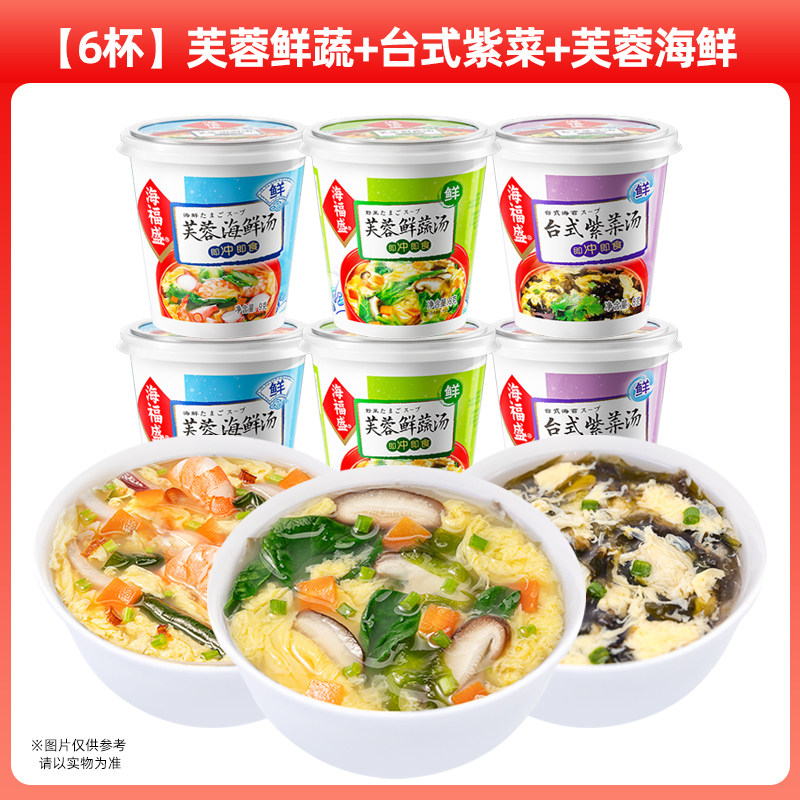 海福盛方便速食汤杯装冲泡即食汤速溶汤料包免煮蔬菜汤酸辣汤 海鲜汤*2+鲜蔬汤*2+紫菜汤*2