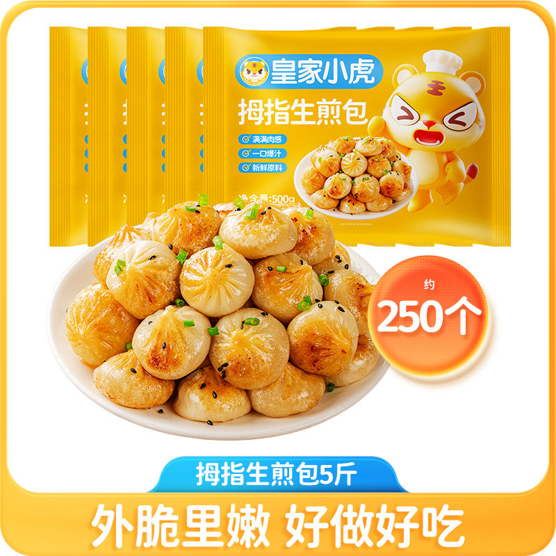 皇家小虎拇指生煎包儿童早餐半成品食品学生鲜肉小笼包子速冻批发 【5斤实惠装】拇指生煎包(约250个)
