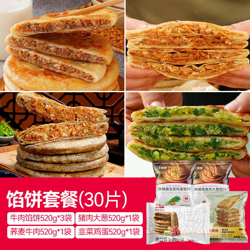 大希地黄油安格斯牛肉酥皮馅饼速食早餐加热即食手抓饼煎饼食材 【6袋30片】【4口味组合】牛肉3袋+猪肉大葱1袋+荞麦牛肉1袋+韭菜鸡蛋1袋