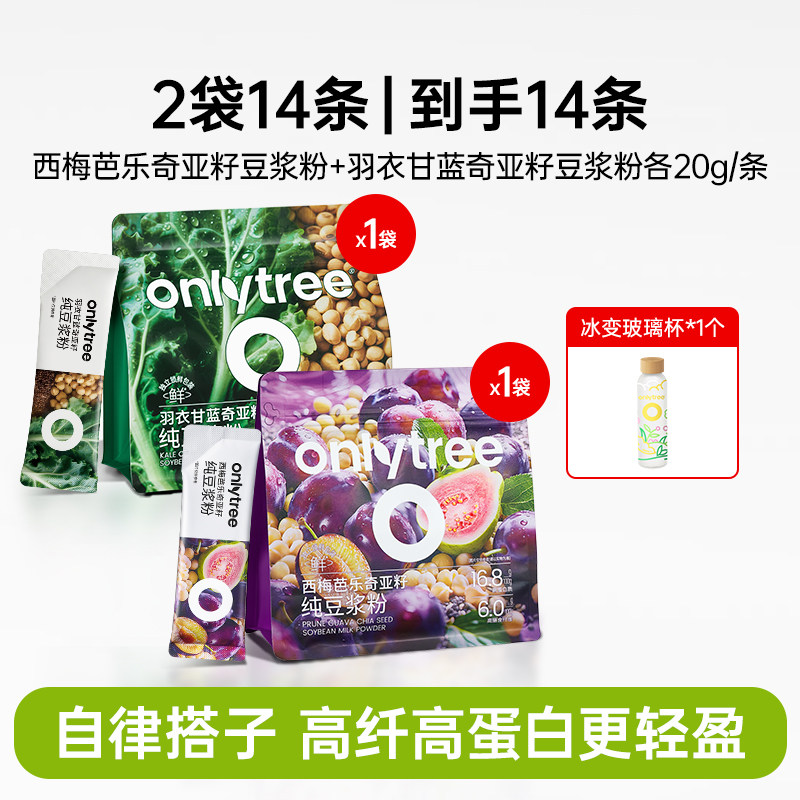 onlytree西梅芭乐奇亚籽纯豆浆粉大餐救星高膳食纤维营养早餐代餐 【双拼口味】西梅芭乐奇亚籽纯豆浆粉*1+羽衣甘蓝奇亚籽纯豆浆粉*1+冰变玻璃杯